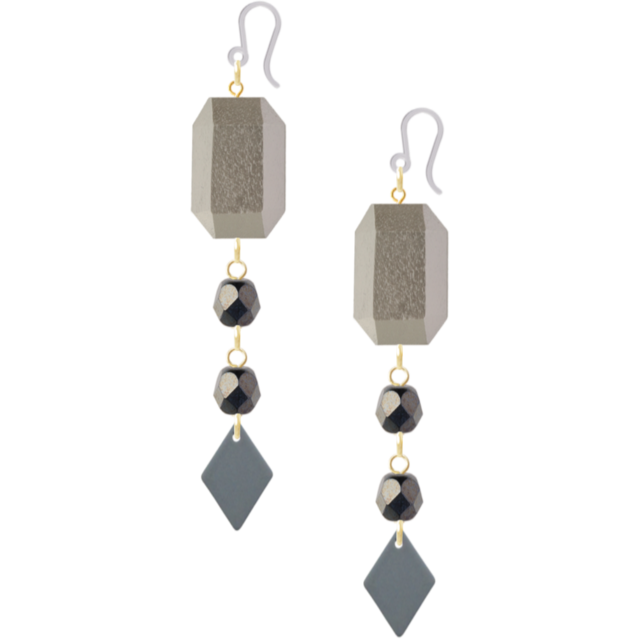 天然木にパール加工されたパーツとチェコのガラスビーズを使ったピアスです。樹脂フックなので金属アレルギーの方も安心してお使いいただけます。
